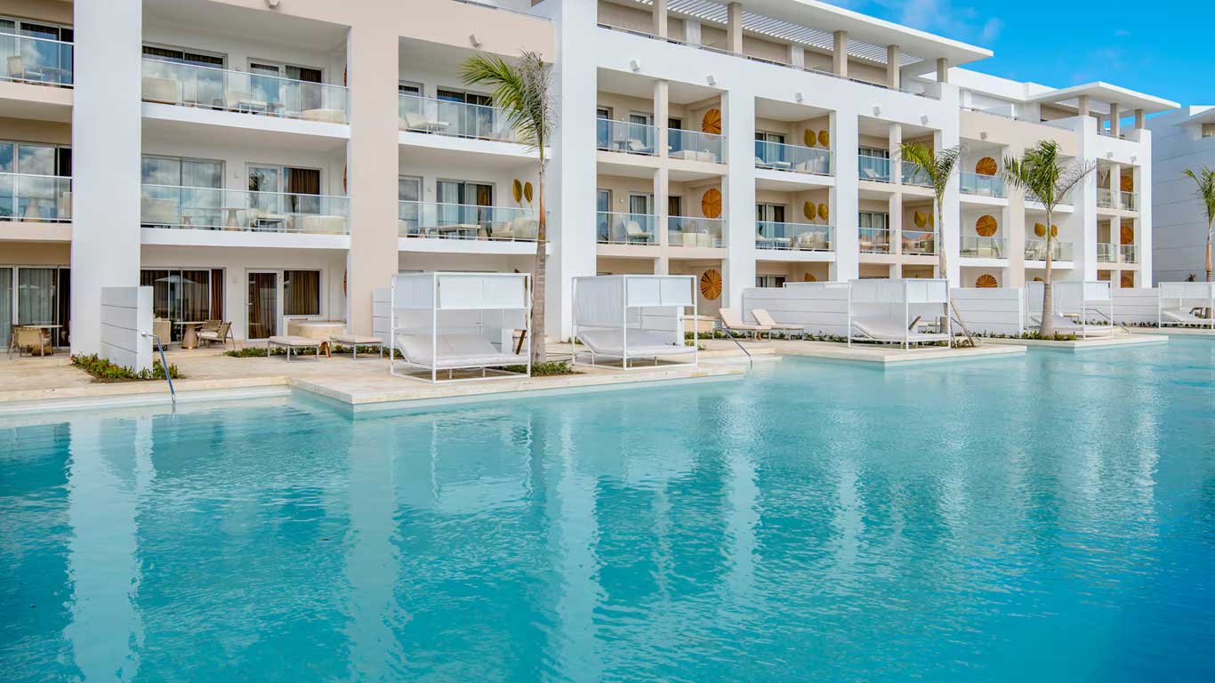 The Suite Swim Up Suite at Paradisus Grand Cana Resort by Melia features a private sun terrace with a hot tub, direct access to a stunning swimming pool, and beautiful views. Inside, enjoy the comfort of two distinct areas—a private bedroom and a spacious living and dining space—perfect for relaxing after a day in paradise.